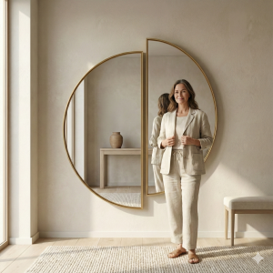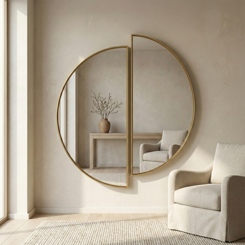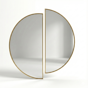 The Aurelia Split Circle Designer Mirror is a statement piece crafted for modern and luxury interiors. Featuring a distinctive dual semi-circular design, this mirror brings architectural elegance and visual balance to any space.