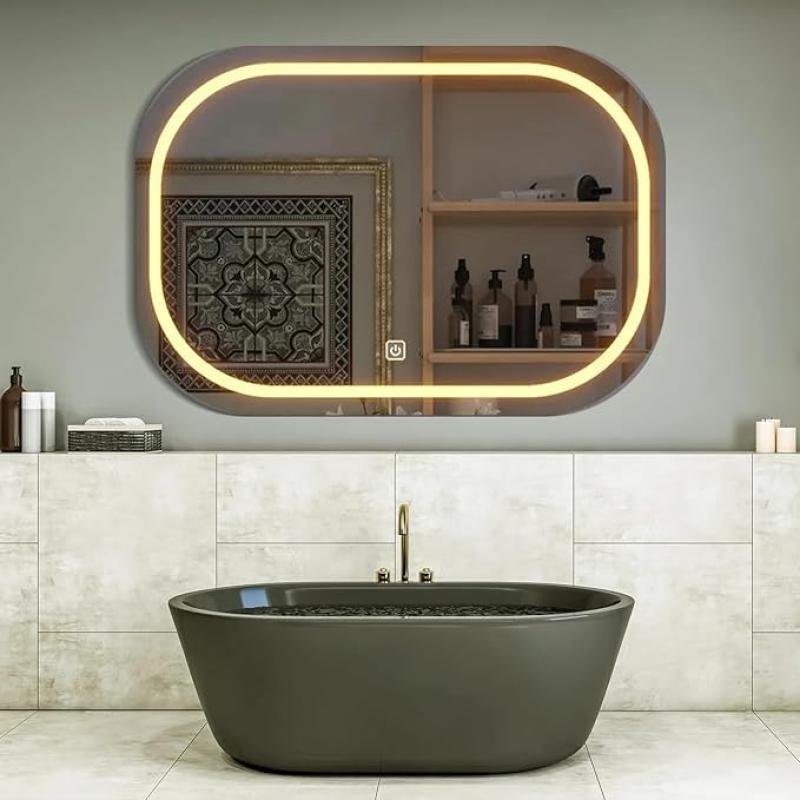 Round Glass | 24 X 24 Inch Wall-Mounted LED Mirror with Smart Sensor | 3-Color Light (Warm, White, Natural)
