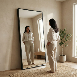 The Minimalist Full-Length Floor Mirror is designed for modern living spaces where simplicity meets elegance. Crafted with premium mirror glass and framed in a sleek black metal profile, this mirror offers a clean, timeless aesthetic. Perfect for full-body reflection and enhancing natural light, it works beautifully as a floor-standing or wall-mounted mirror.