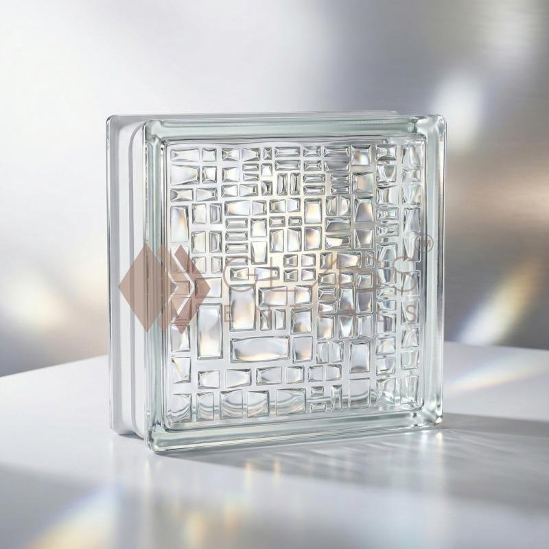 Mosaic Glass Bricks feature intricate surface patterns that diffuse natural light while adding depth and visual interest. Ideal for partitions, feature walls, façades, and contemporary interior and exterior designs