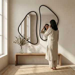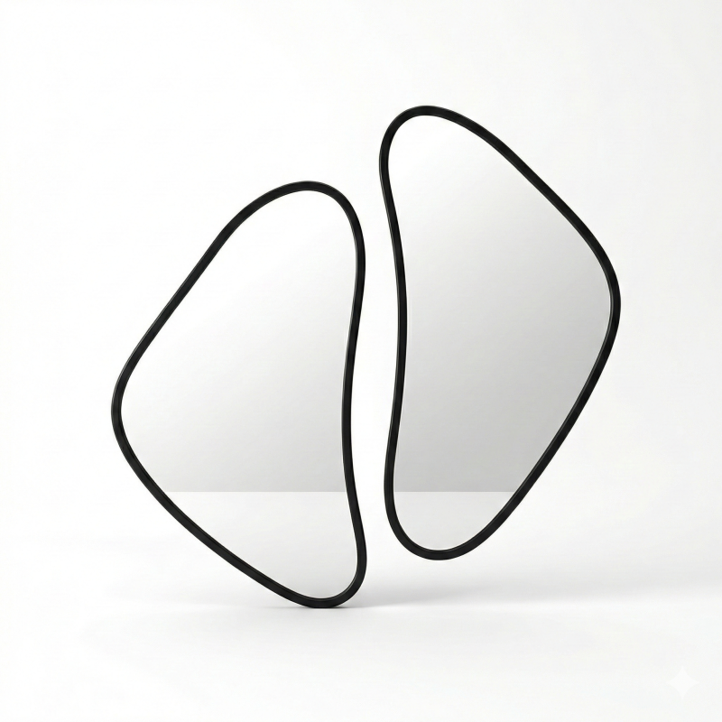 The Organic Asymmetrical Wall Mirror Set is a contemporary designer mirror crafted to elevate modern interiors. Featuring free-form organic shapes with a premium black metal frame, this mirror set adds depth, elegance, and visual interest to any space. Ideal for minimalist, Scandinavian, and luxury décor themes.