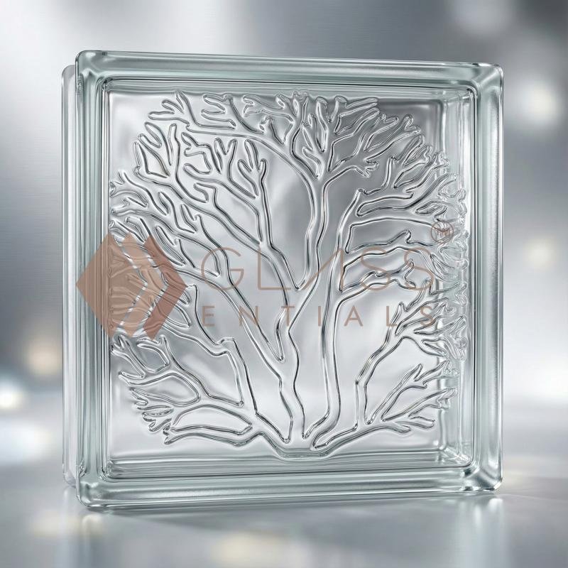 Tree Pattern Glass Bricks feature a nature-inspired texture that diffuses light while adding privacy and visual interest. Ideal for partitions, feature walls, façades, and modern architectural designs.